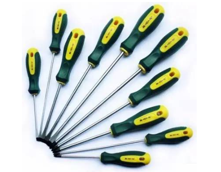 螺钉旋具俗称起子、螺丝刀,用来拧紧或旋下螺钉。电工不能使用金属杆直通柄顶的螺钉旋具(俗称通芯螺丝刀)。应在金属杆上加套绝缘管。