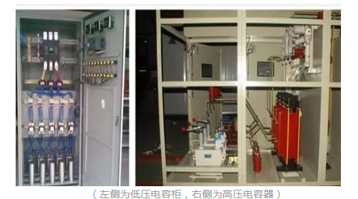 电容柜装在高压柜侧的,叫做高压集中补偿;装在低压侧的,叫做低压就地补偿,基本以低压就地补偿的为多数。