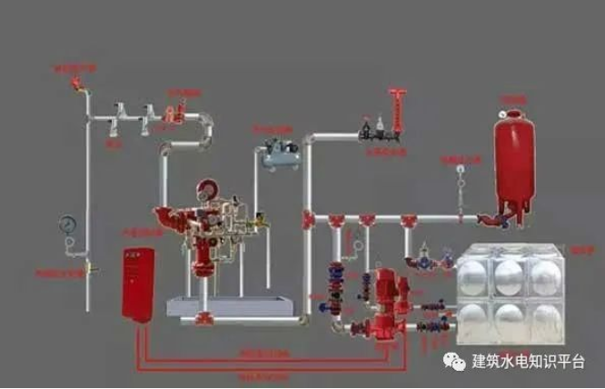 作用:开启和关闭管网的水流,传递控制信号至控制系统并启动水力警铃直接报警。有湿式、干式、干湿式和雨淋式4种类型。