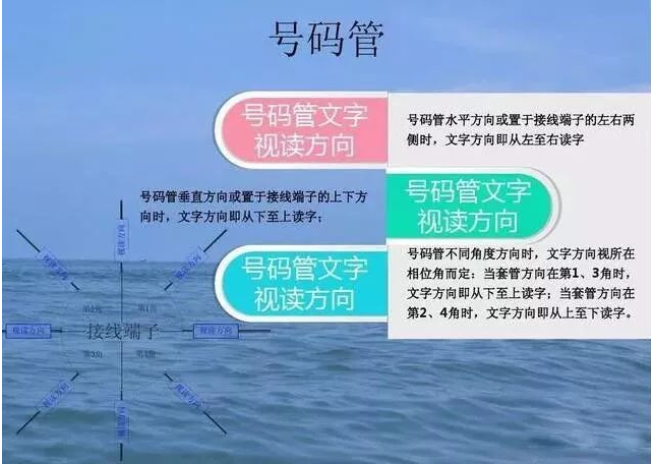 1,号码管水平方向或置于接线端子两侧时,号码管文字方向从左往右读数。