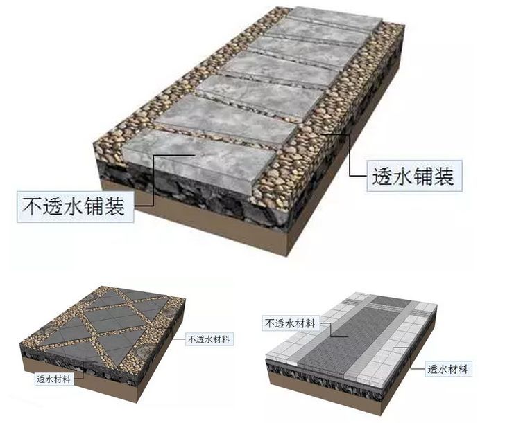 主要有两大类:一类为单一透水模式和组合铺装模式