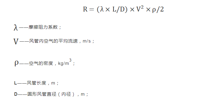 布风管系统以直管为主,系统中三通、弯头及变径很少,即一般以沿程阻力损失为主,具体沿程摩擦阻力按下式计算: