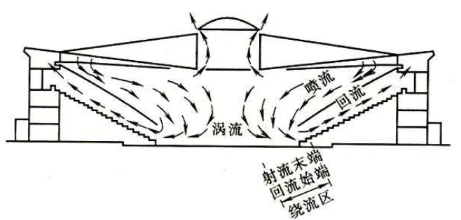在室内的气流流场中,回风口汇流的影响范围很小,影响室内气流运动规律和室内空气参数分布的主要因素是送风射流。