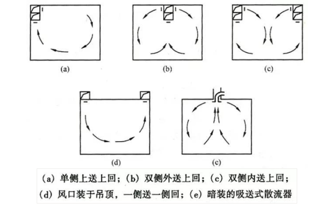 目的:根据射流规律,合理布置送风口的数量和位置,保证人活动区或者某个特定区域内的空气的温度、速度、洁净度等参数满足要求。
