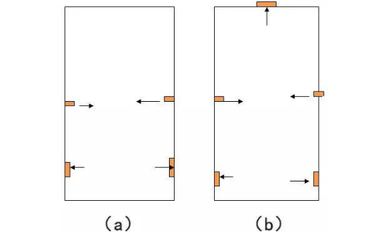 (a)双侧中部送风、双侧下部回风