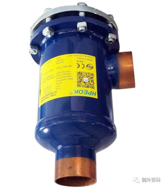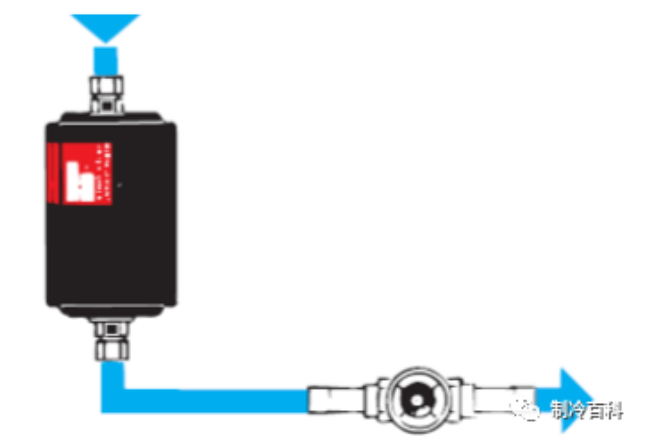 2、大型系统:因为压缩机的成本比较高,在吸气管装一个可拆卸的干燥过滤器来保护压缩机是值得的。