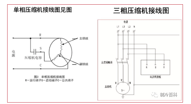 3、空载运行:旧压缩机拆除前,保证吸排气管管口都敞开的状态下,运行时间不超过5秒钟,[本文来源制冷百科公众号]判断压缩机单体是否堵转、有无吸排气。测试压缩机是否有吸排气可用手指接近排气口感受;绝缘耐压不良、运行电流大的旧压缩机可能漏电,不能以此种方法测试。