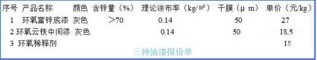 1*50m厚环氧富锌底漆 ----- 约0.25㎏/㎡。