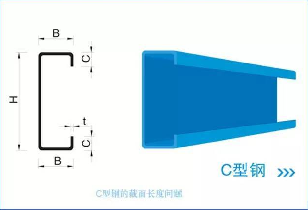 1、 C型钢的截面尺寸计算也要按其加工工艺来的,列如C200X60X20X2.5的C型钢,其实它是采用宽度为340mm的2.5mm厚的薄钢卷经过专用的冷弯机械压制而成的,所以具体的C行钢截面尺寸应该是所有边长之和减去4个弯角(每个弯角为5mm)。如C200X60X20X2.5的C型钢截面长度为(200+60+60+20+20-20=340)