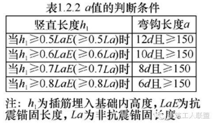 答:是通过一个表来判断的。也就是插筋埋入基础的高度和锚固长度的比较来判断,见下表。