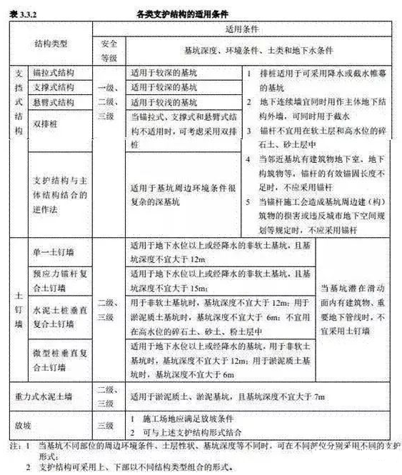 1、开挖深度较大或存在边坡塌方危险应按(JGJ120-2012)中表3.3.2的适用条件选用放坡、悬臂式排桩支护结构等。