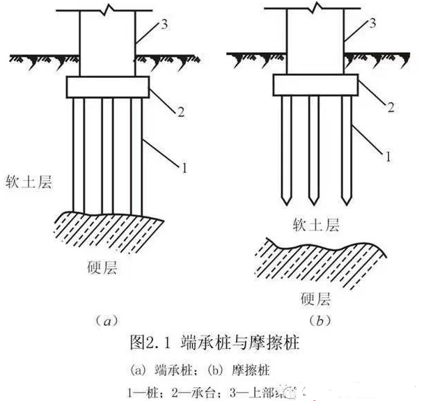 一、按受力情况分为端承桩、摩擦桩
