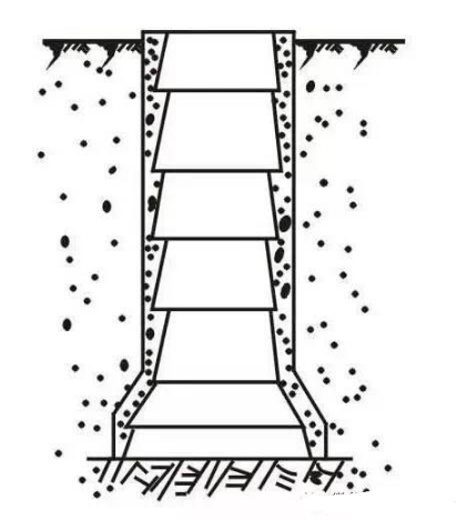 即分段开挖、分段浇筑混凝土护壁,既能防止孔壁坍塌,又能起到防水作用。