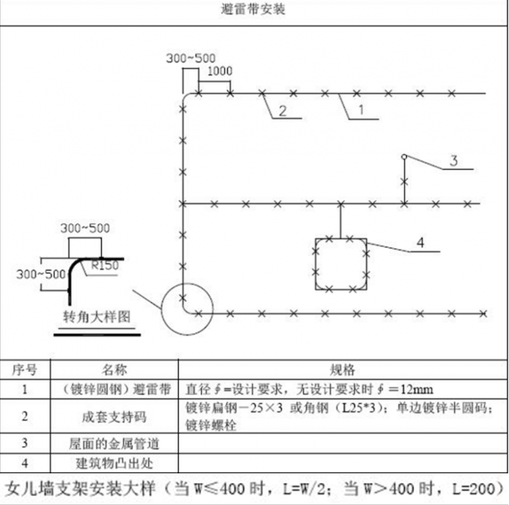 5、避雷带高出女儿墙或屋面完成面150-200mm。