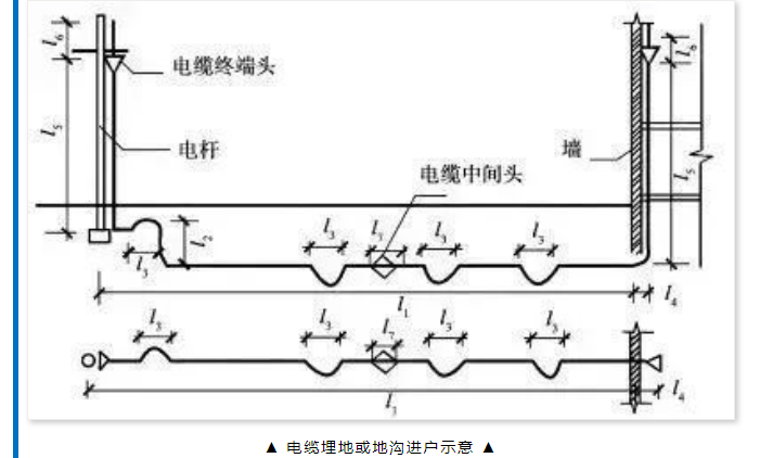 电缆长度=(2端头长+引上下长+直埋地长+电缆沟长+保护管长+钢索长+沿墙长+竖井道长+桥架长+槽架长十梯架长+线道长等+电缆预留量)(1+2.5%)