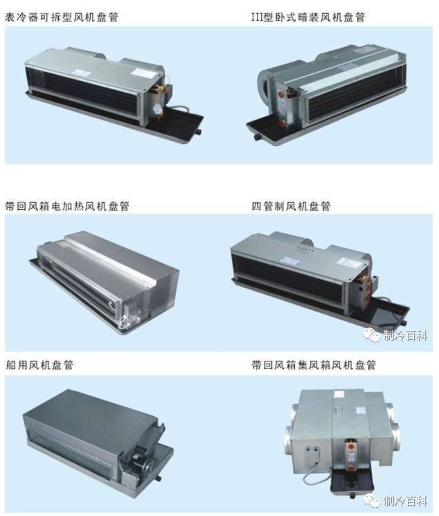 卧式风机盘管按照厚度可以分成:超薄型、普通型;卡式风机盘管按照有无冷凝水泵可以分成:普通型、豪华型;