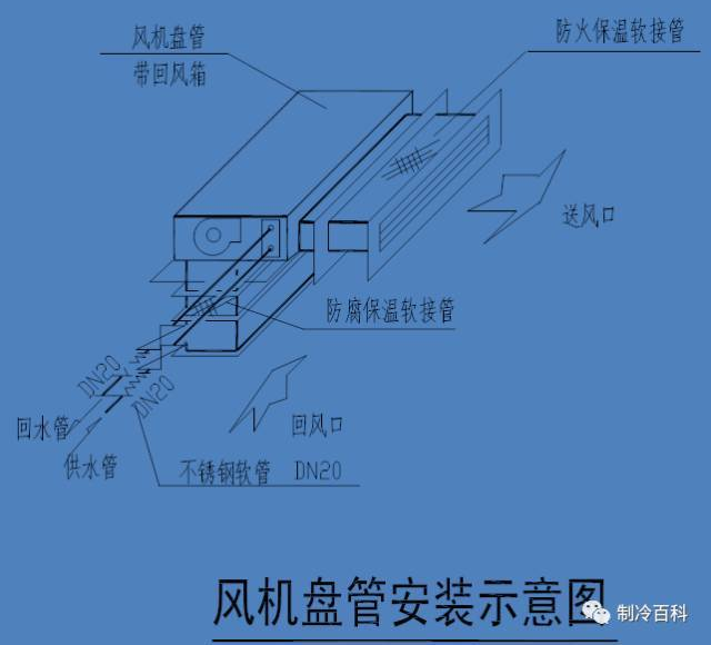 风机盘管的进出水阀门应尽可能靠近凝水盘安装,以免阀杆的滴水漏人房间。
