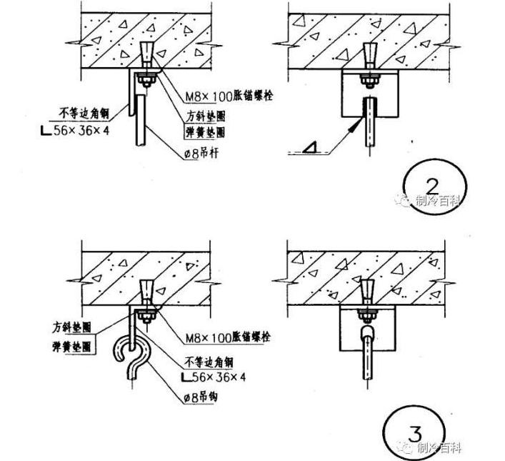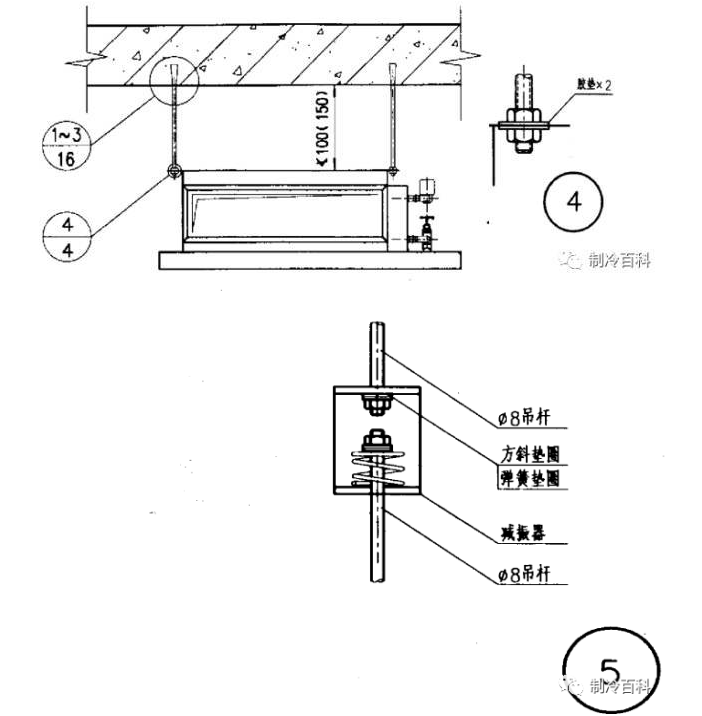 卧式风机盘管吊杆与楼板固定的节点: