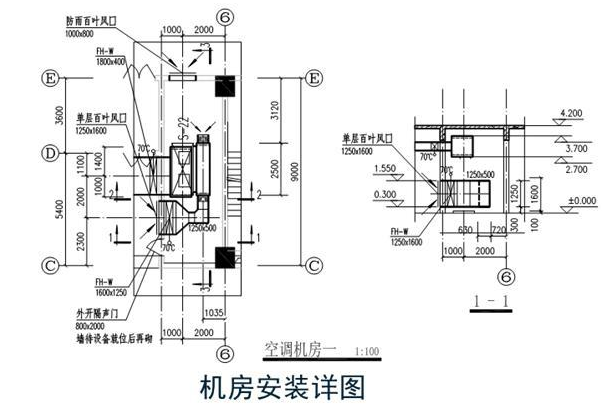 空调机房是风管与设备连接交叉复杂的部位,在平面图表达不清时就通过机房安装详图来体现。