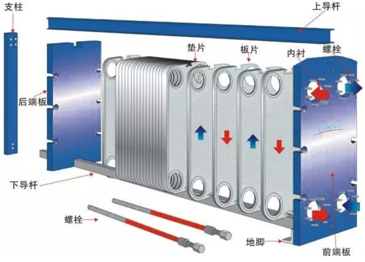 板式换热器的垫片在使用时如果发生渗漏、断裂、老化等现象,要及时更换。更换应按以下顺序进行。