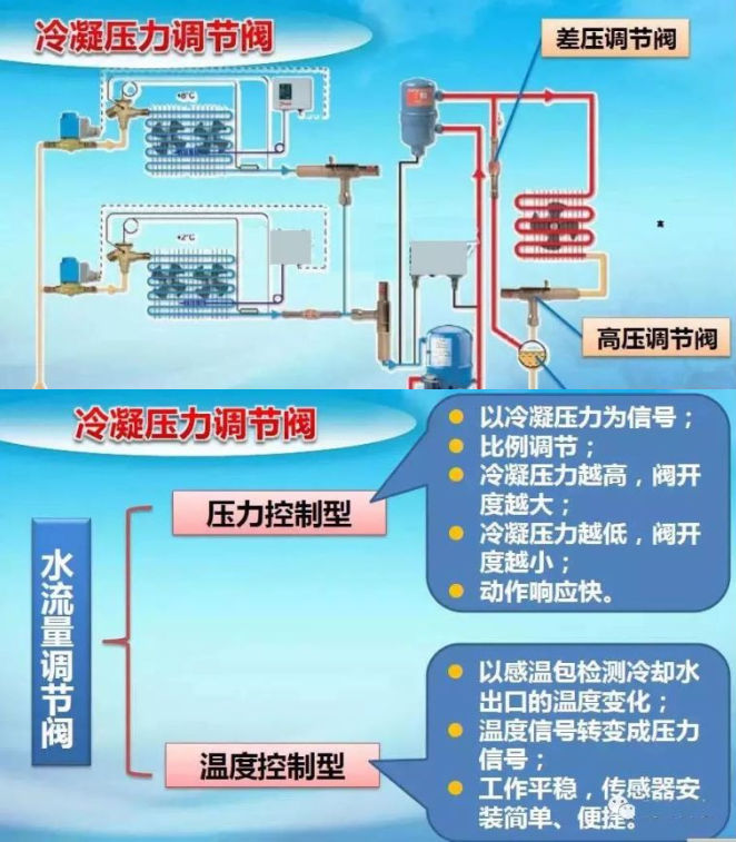 冷凝压力调节阀是通过高压调节阀+差压调节阀 来实现对压力的调节。