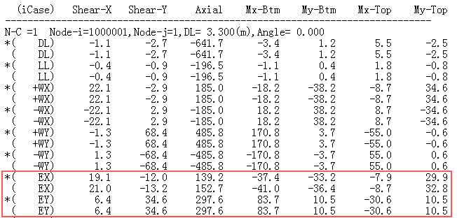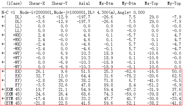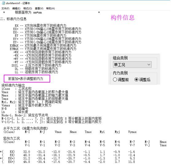 构件内力调整结果可以在wwnl*.out文件中查看,如下图所示。