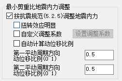 其中:为剪力系数,对竖向不规则结构的薄弱层,尚应乘以1.15的增大系数。软件称之为最小剪重比地震内力调整,可在设计信息选项卡中设置。