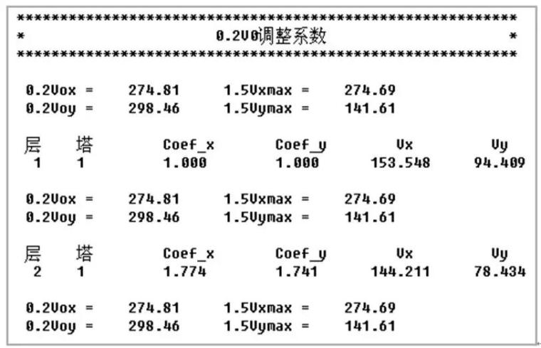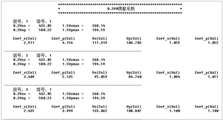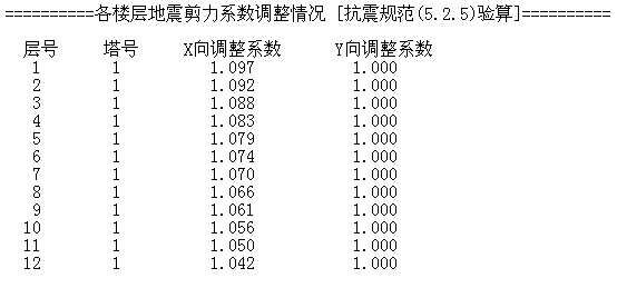 如果是筒体结构,并且按照《高规》9.1.11-2条调整了剪力墙地震剪力,则软件同时输出墙剪力调整系数,如下图所示。