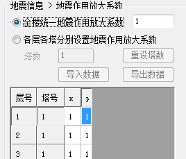 软件提供设置全楼或分层地震作用放大系数的参数。对于分层地震作用放大系数,软件还提供直接导入弹性时程分析算出来的放大系数。