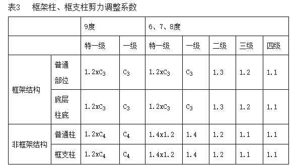 最终的剪力调整系数为表格3与表格2中数值的乘积。