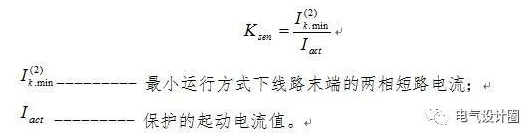 限时速断保护是反应于电流增大而延时动作的一种电流保护类型,限时电流速断保护要求在系统的最小运行方式下,线路末端发生两相短路时,具有足够的反应能力,这个能力通常用灵敏系数Ksen来衡量,一般要求Ksen1.3~1.5,灵敏系数按下式校验: