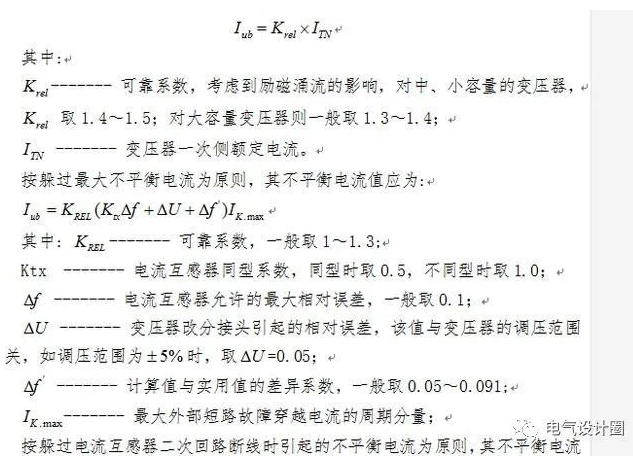 按躲过电流互感器二次回路断线时引起的不平衡电流为原则,其不平衡电流值为: