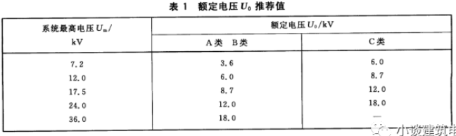 表1是国家标准推荐的U0电压值