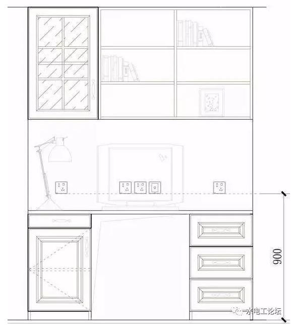 3、电脑桌和其它桌上面的插座距地900㎜。
