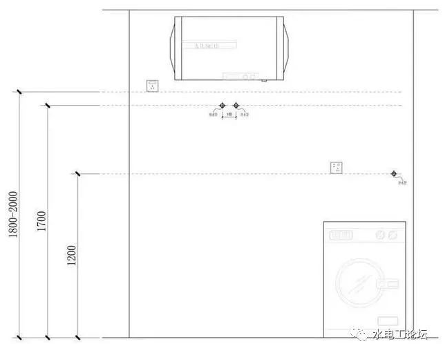 2、电热水器插座可安在1800-2000㎜处,建议用16A带开关三孔插座,并加装防溅盒。