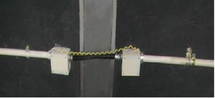 电线管穿越变形缝采用金属软管连接两线盒,并作跨接处理。