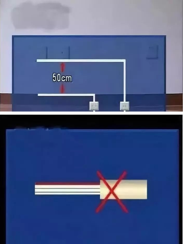 首先要区分强弱电,强电提供能量动力,如电视、热水器等,弱电为信号,如电话线、消防指示等。为防止信号干扰,强弱电的间距应30-50厘米,而且强、弱电绝对不能同穿一根管内;