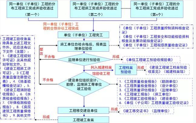 1、单位工程质量经竣工质量验收后,建设单位填写《单位(子单位)工程竣工验收记录》,《单位(子单位)工程质量控制资料核查记录》,《单位(子单位)工程安全和功能检验资料核查及主要功能抽查记录》,《单位(子单位)工程观感质量检查记录》,《分部(子分部)工程验收记录》。