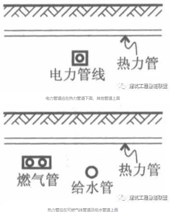 4. 电力管道应在热力管道下面、其他管道上面