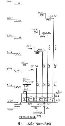 通过系统图,可以清楚地了解整个建筑物内给水排水管道的竖向布置情况以及管道的规格、管道在每层的敷设高度、管道在每层将要将要连接的设备等情况,可以了解整个工程的供水、排水全貌和管路走向关系。