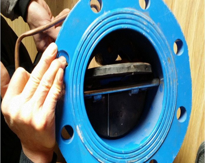 缓闭蝶形止回阀特点:钢板后附橡胶垫片,软密封,在有压情况下,密闭效果更好一点。