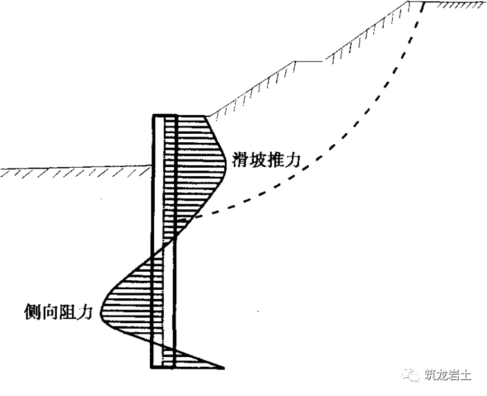 抗滑桩与一般桩基类似,但主要是承担水平荷载。抗滑桩也是边坡处治工程中常见常用的处治方案之一,从早期的木桩,到近代的钢桩和目前在边坡工程中常用的钢筋混凝土桩,断面型式有圆形和矩形,施工方法有打入、机械成孔和人工成孔等方法,结构型式有单桩、排桩、群桩,有锚桩和预应力锚索桩等。