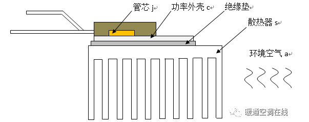 热传递通道:管芯j功率外壳c散热器s环境空气a