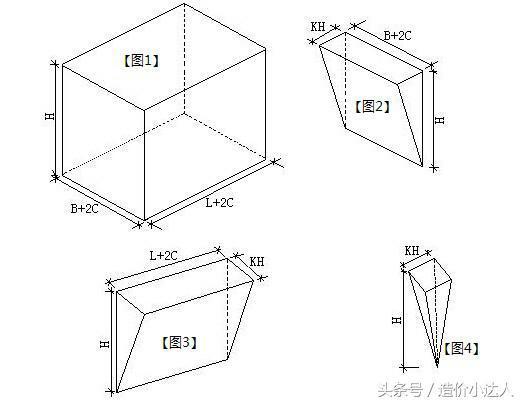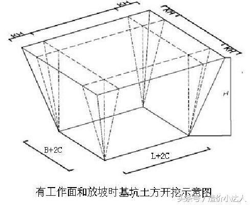挖基坑 V=(a+2c+kh)*(b+2c+kh)*h+1/3k2h3