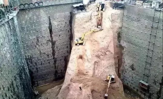 通常来说,开挖深度超过5m的基坑就能称为深基坑了,目测这个基坑至少得有几十米,不知道是多大的工程啊!