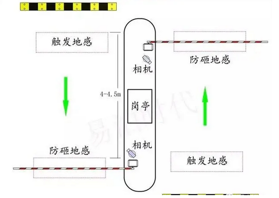 第二道线圈叫防砸线圈,埋设于闸杆正下方,当检测到有车辆时,发出信号给道闸里的车辆检测器,阻止闸杆下落砸到车辆,信号消失才会落杆。