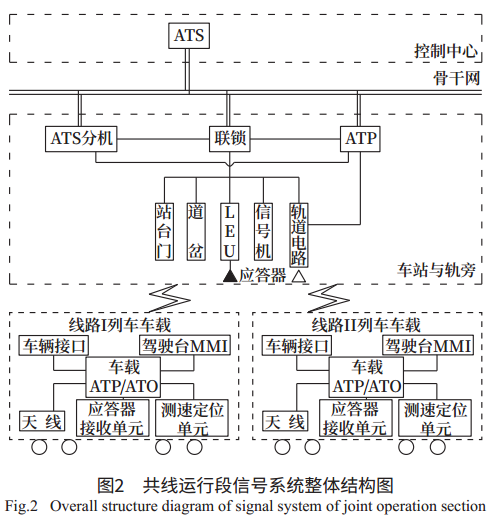 对于B-C独立运行段,其安全完全由线路II信号系统保证。对于A-B共线运行段,其位置监督均基于线路I的轨道电路,进路控制均由线路I的联锁实现,调度指挥均由线路I的ATS系统完成,各自线路列车分别与各自的轨旁设备通信完成列车的追踪运行。