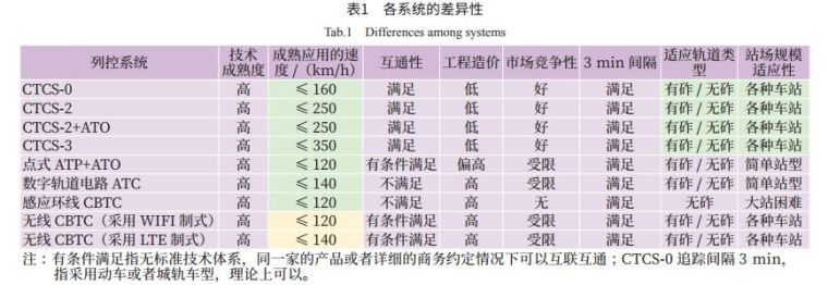 目前市域铁路列控系统的选择基本形成了两大类:一类是国铁制式CTCS系列;一类是城轨制式采用ATC系列。各系统的差异性比较如表1所示。