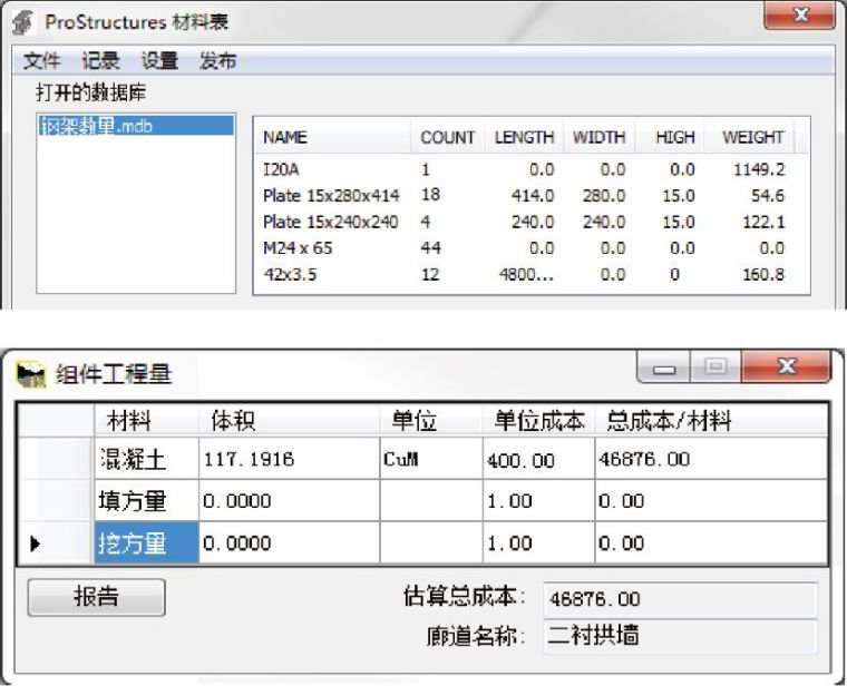 利用专用工具如ProStructure、PowerCivil生成的钢结构模型和廊道模型,这类对象能够直接被软件统计工程数量,见图7。
