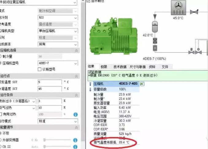 不同的制冷剂的热物理性质不同,经历同样的压缩过程后排气温度升高量不同。因此对于不同的制冷温度,应该选用不同的制冷剂。我们以 比泽尔选型软件来试试看。